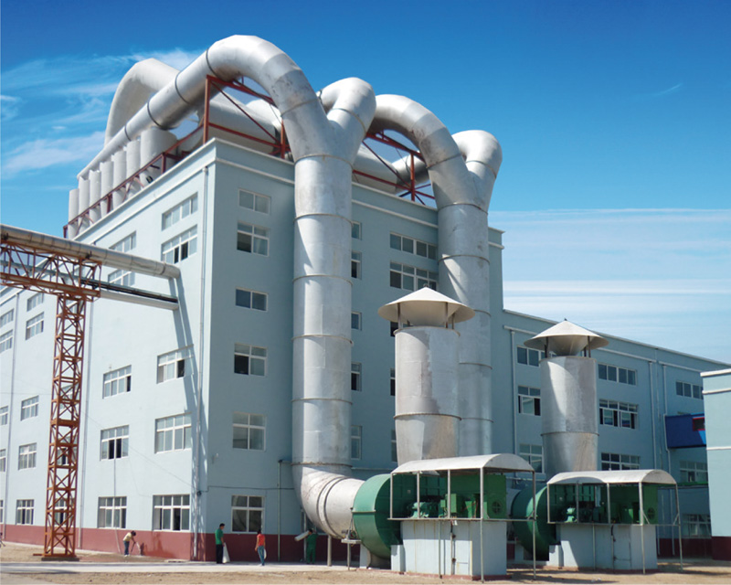 To prevent dust explosions, explosion venting and fire extinguishing devices are installed in the drying system